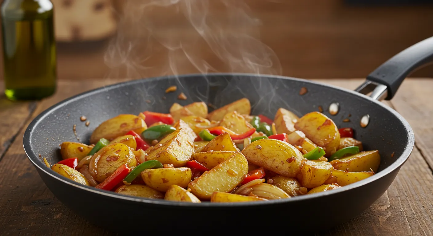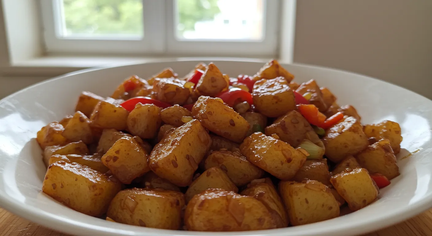 - 소금과 후추로 간을 맞춘 뒤, 약불로 은근히 볶아주면 고소한 감자볶음이 완성됩니다.