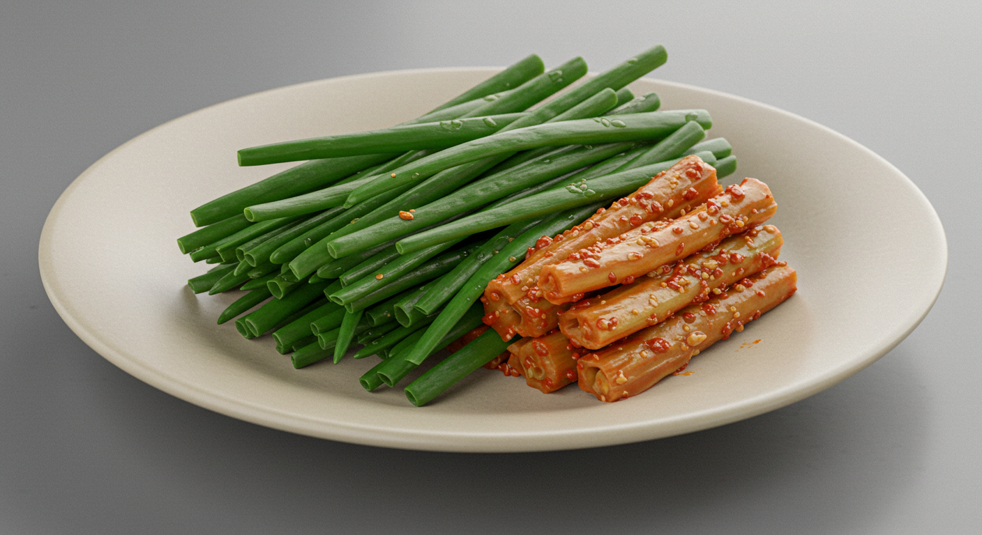 부추 겉절이는 아삭한 식감과 새콤달콤한 맛으로 떡국과 최고의 궁합을 자랑하는 반찬입니다. 부추의 은은한 향과 양념의 조화가 떡국의 부드러움을 한층 더 돋보이게 만듭니다.