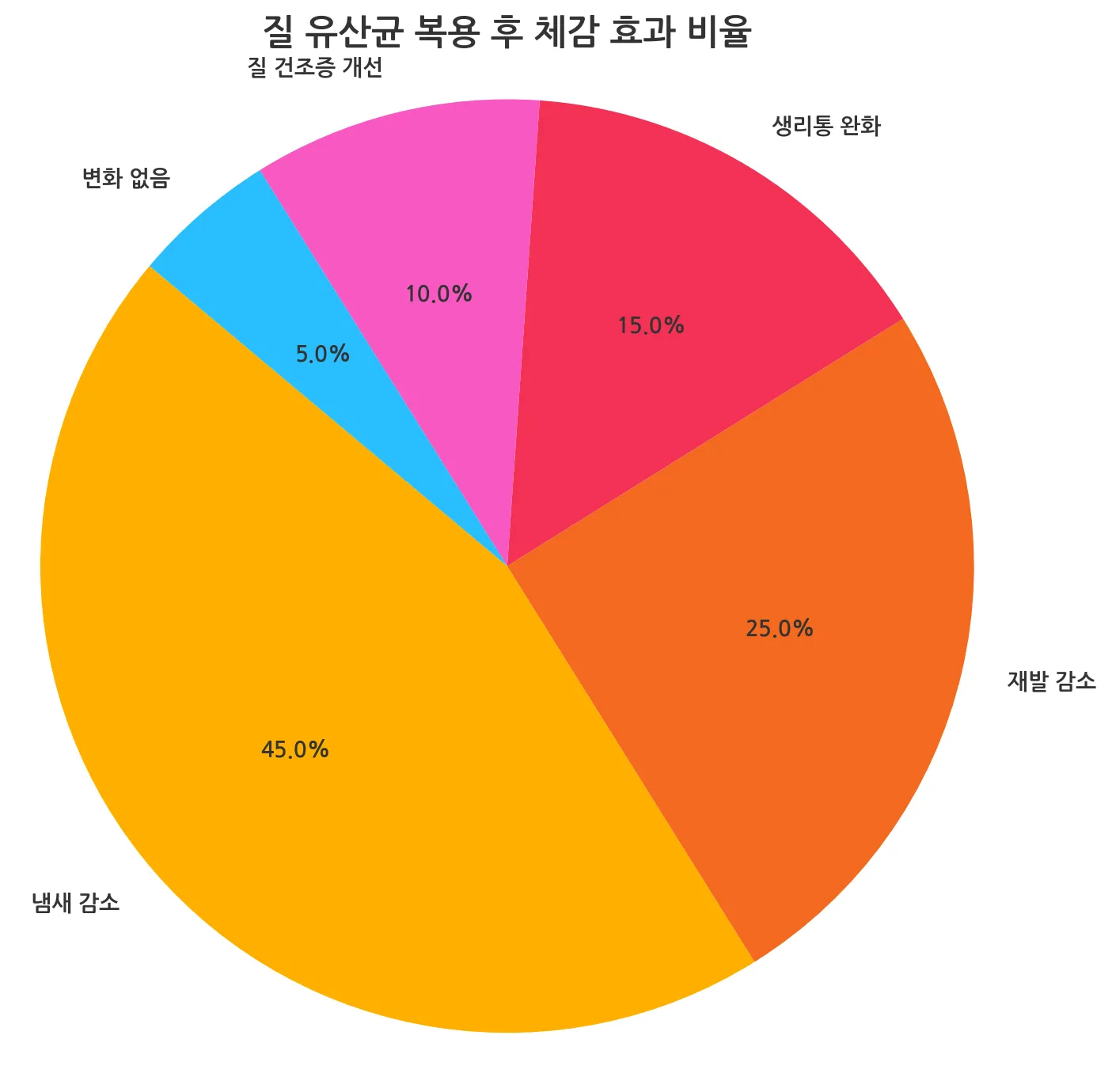 온라인 리뷰 분석 결과, 질 유산균 복용 후 가장 많이 언급된 변화는 ‘냄새 감소’, ‘질염 재발 감소’, ‘생리통 감소’였습니다. 특히 하루 한 캡슐 2~3개월 복용한 사용자 중 약 74%가 만족감을 표시했으며, 생리통 완화 효과를 기대하지 않았는데 개선되었다는 부수적 효과도 보고됐습니다.